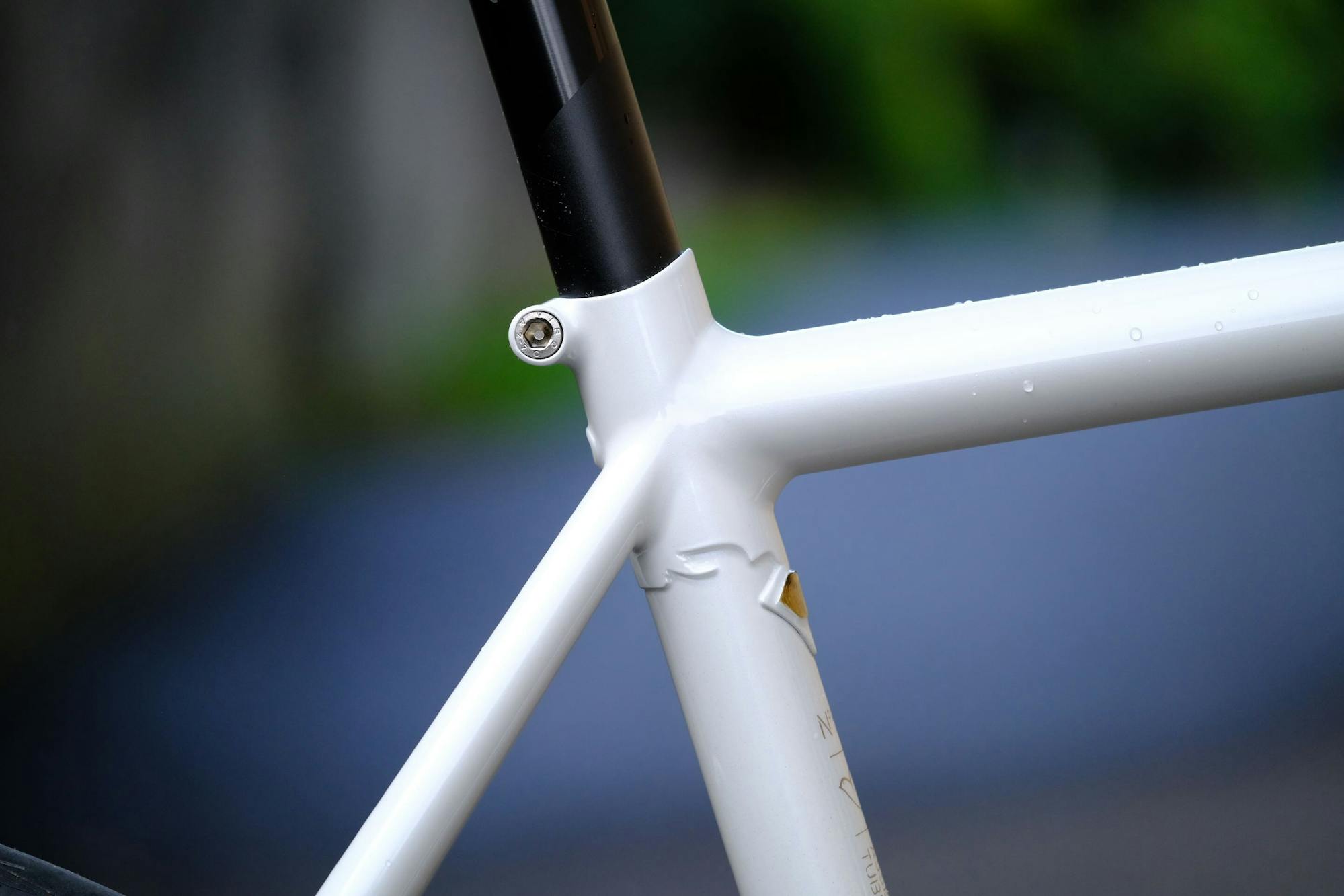 Nous avons choisi d'agrémenter le cadre de détails discrets. Les haubans sont liés par un pontet cintré qui offre un supplément de rigidité. Sur le tube de selle, un petit médaillon doré et numéroté vient compléter notre habituel cartouche présentant les personnes ayant réalisées les différentes étapes de construction du vélo. Le poinçon du cadreur ayant réalisé le cadre est positionné sur le tube de selle : le Victoire n°502 porte la signature d'Olivier, notre chef d'atelier.